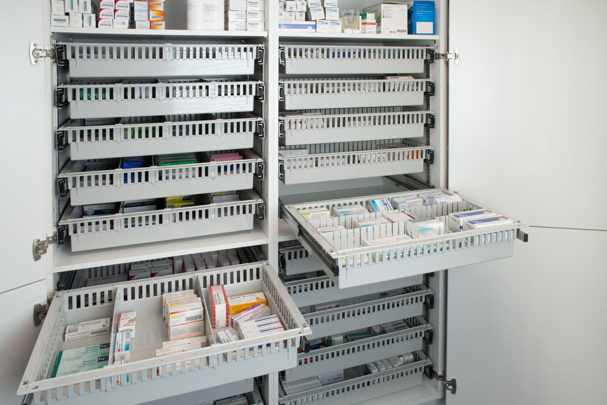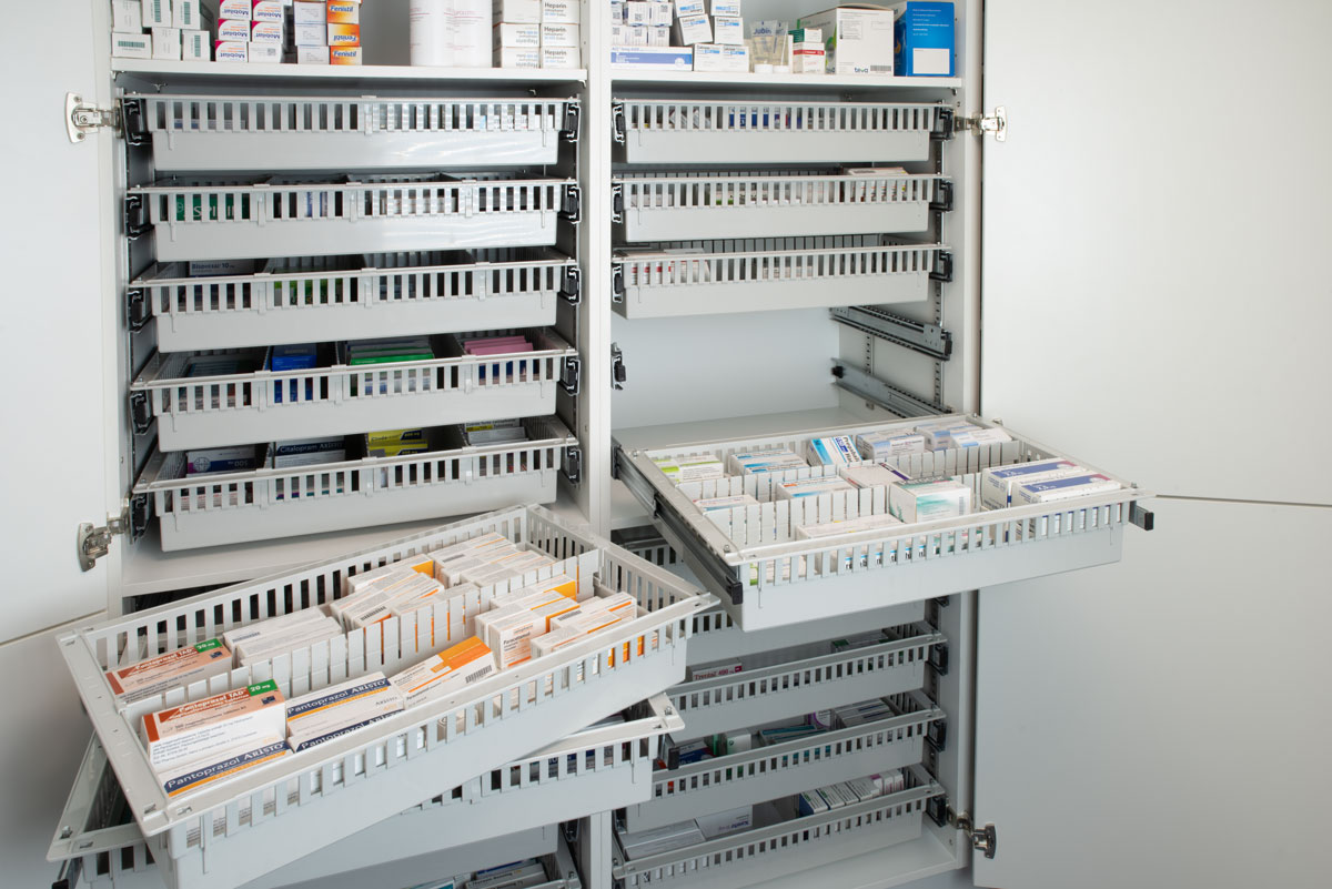 Die Apothekenschränke von adam maximieren den Stauraum und optimieren die Abläufe. Gestalten Sie Ihre Apotheke mit adam! www.adam-moebel.de Medikamente sind z.B. in Apotheke, Krankenhaus, Klinik, Arztpraxis, Pflegeheim und Hospiz sicher und rationell in Schränken aufzubewahren. Damit tragen Sie zum Wohl der Patienten bei.