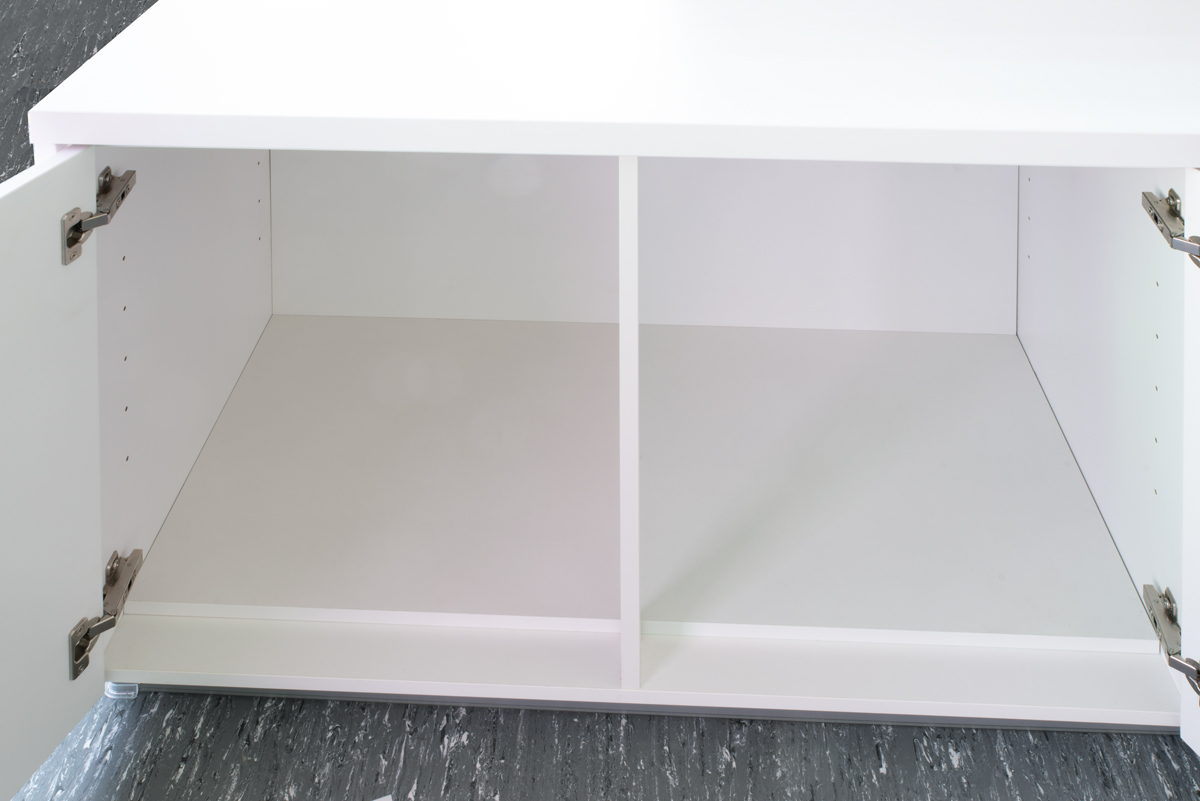 Rechts folgt ein Zubehörschrank, in dem u.a. Papier und Druckermaterial gelagert werden können.